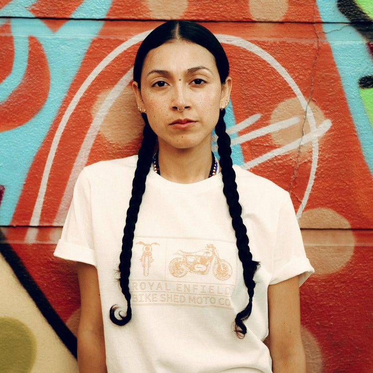 Some of the designs take inspiration from the Bike Shed x Royal Enfield collaboration bike build, co-designed by Royal Enfield's UK Design & Technology team and Bike Shed's Founder, Dutch, to be the perfect East London urban street bike. The collection also draws on the creative side of urban East London, exploring the art and style of the district in billboard, street and typography.