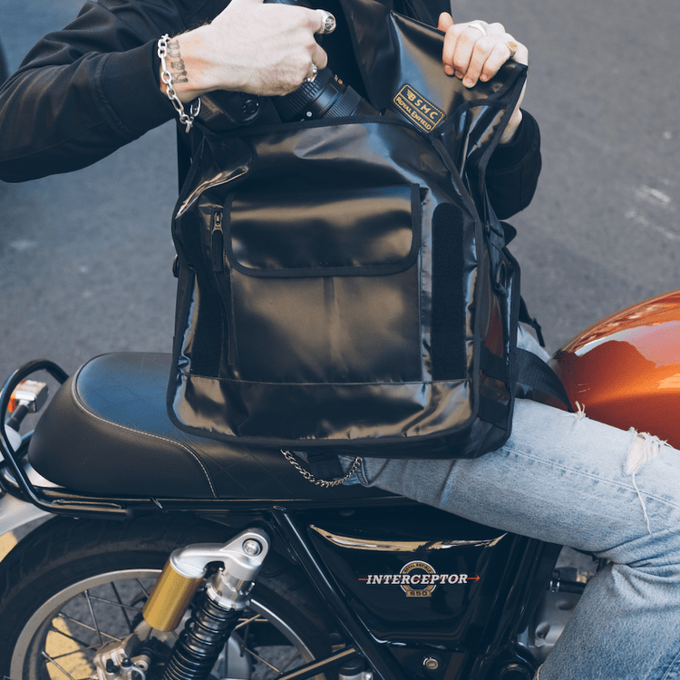 Before technology wiped out the best gig in town, Motorcycle Couriers used to own London’s streets. On every corner you would see a city-hardened rider, bag slung across their back, ready to carve traffic. The BSMC x RE Messenger bag is a throwback to the simple tarp bags those couriers favoured, with a pocket for everything, a removable waist strap and a subtle BSMC x RE patch.