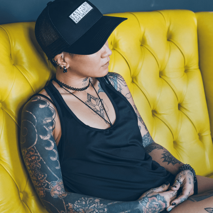 VIN Plate Cap – Referencing the plate behind the headstock baring each machines’ unique vehicle identification number our VIN plate cap keeps things simple up-top with a Black and white embroidered patch